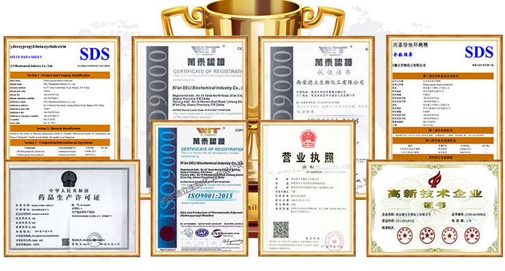 Xi'an Deli Biochemical Industry Co., Ltd. on kõrgtehnoloogiline ettevõte, mis on spetsialiseerunud tsüklodekstriinide ja nende derivaatide teadus- ja arendustegevus, tootmine ja müük. Tarnime farmatseutilisi abiaineid klientidele kogu maailmas stabiilse kvaliteediga ja usaldusväärse teenindusega.